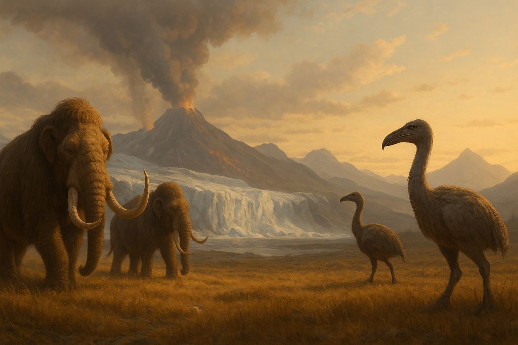 Когда говорят «вымершие гиганты», все сразу вспоминают мамонтов. Но они были не одни. По всему миру к концу последнего ледникового периода — около 10–12 тысяч лет назад — с планеты исчезли десятки видов огромных животных. Это была эпоха, когда Земля прощалась с мегафауной.