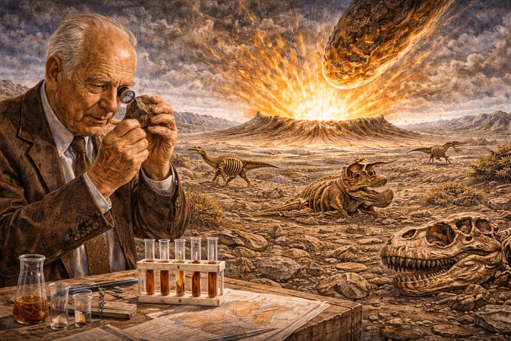 До конца XX века причины исчезновения динозавров оставались предметом споров. Луис Альварес и его коллеги предложили радикально новую идею: массовое вымирание на границе мела и палеогена было вызвано падением гигантского астероида. Эта теория впервые связала глобальную катастрофу с конкретным физическим событием.