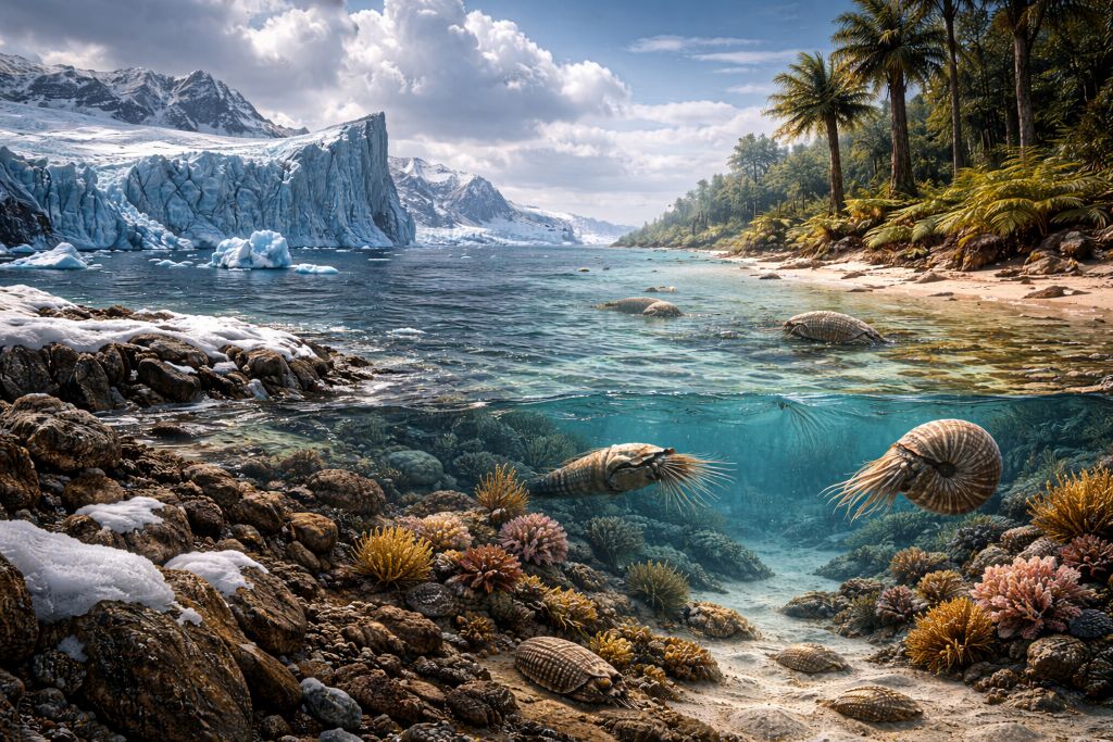 Палеозойская эра — это не ровная «древняя стабильность», а время резких климатических поворотов. За сотни миллионов лет Земля успела побывать и почти безо льда, и с мощными материковыми ледниками. Эти климатические качели меняли уровень моря, разрушали и создавали экосистемы, ускоряли эволюцию — и иногда запускали массовые вымирания.