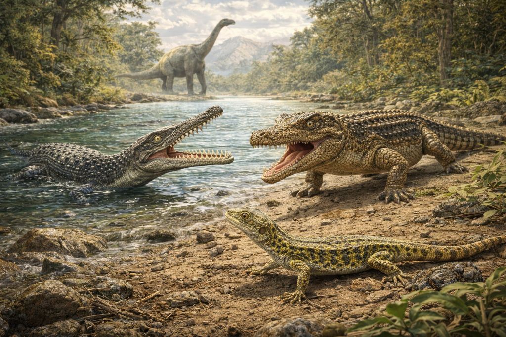 Динозавры доминировали в мезозойских экосистемах, но они были далеко не единственными их обитателями. Рядом с ними существовали разнообразные группы рептилий, включая ранних ящериц и крокодиломорфов. Эти животные занимали собственные экологические ниши и играли важную роль в функционировании древних экосистем.