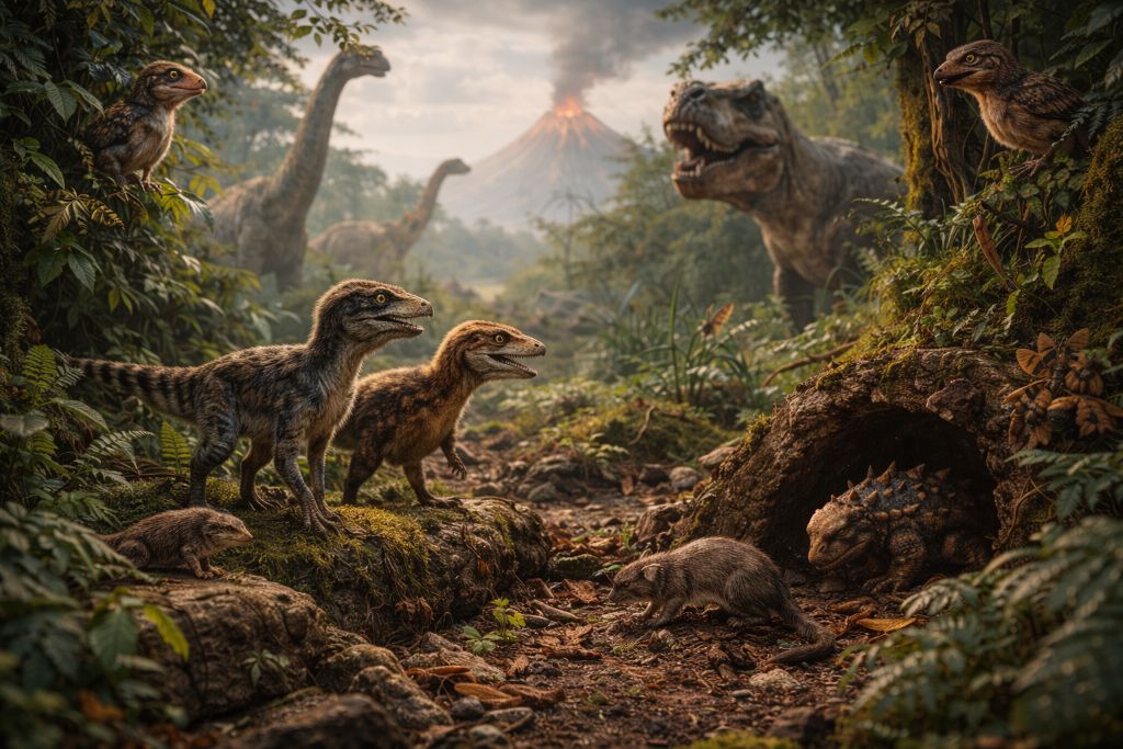 Когда мы думаем о мезозое, в голове сразу всплывают гиганты — зауроподы как «живые мосты» и хищники размером с автобус. Но на самом деле успех эпохи динозавров строился не только на великанах. Маленький размер был отдельной стратегией выживания — и часто куда более надёжной, чем быть самым большим.